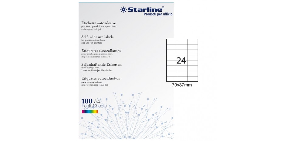 2400 ETICHETTE BIANCHE 70x37mm in fogli A4/24 STARLINE