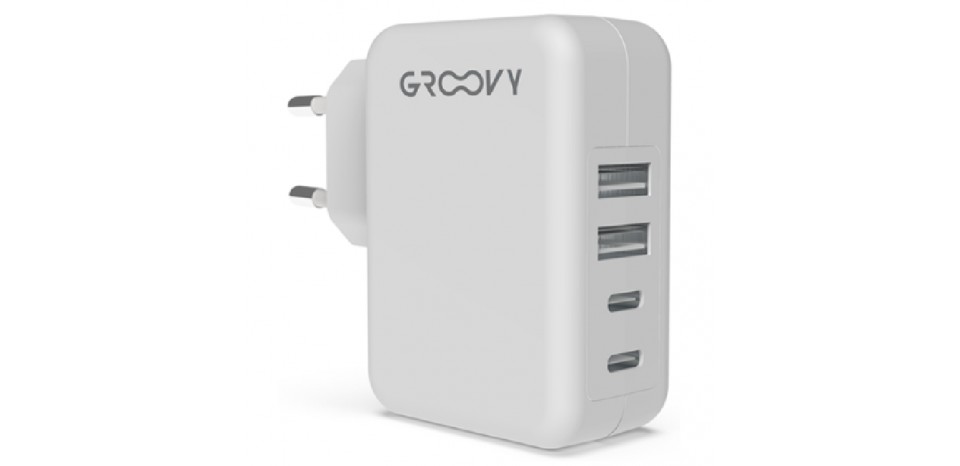 CARICATORE ALIMENTATORE DA MURO 4 PORTE 2x USB-A + 2 TYPE-C OUTPUT 24W 5V 4,8A, 110-240V ac, Material ABS (CE, RoHS, EMC, PAHS, ERP).